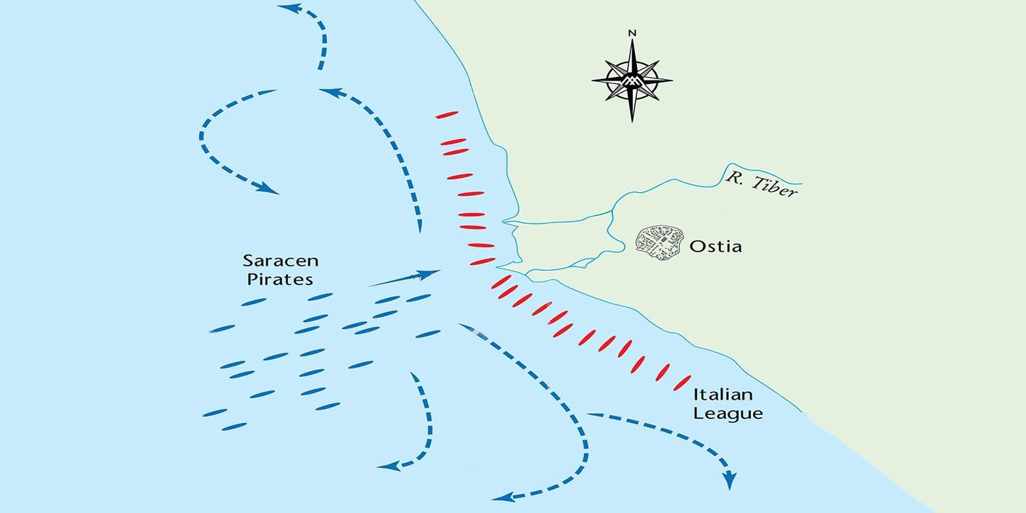 Остия стала крупнейшим морским сражением христиан и мусульман до самой великой битвы при Лепанто в 1571 году. Как и Пуатье, она очертила предел экспансии ислама в Европе.