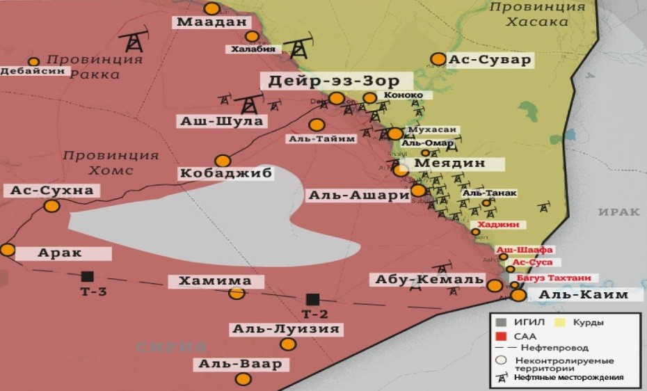 При нем было порядка четырех миллионов сирийских фунтов. «Демократические силы» захватили практически всю восточную половину провинции, где располагаются крупнейшие в стране нефтяные месторождения. Оккупанты ведут незаконную добычу энергоресурсов и поставляют их за границу, вывозя сначала на территории соседних Турции и Ирака.
