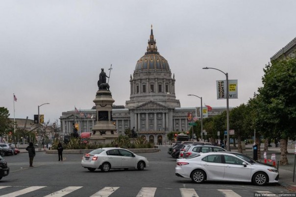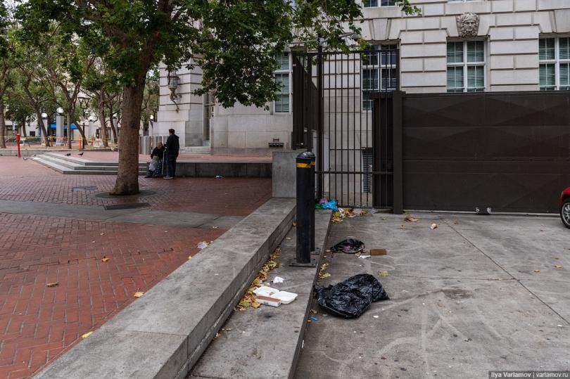 01. Всё это происходит в самом центре города! Вот здание мэрии Сан-Франциско. Тут парковка, туристы, а на соседней улице героиновые наркоманы гадят под себя.