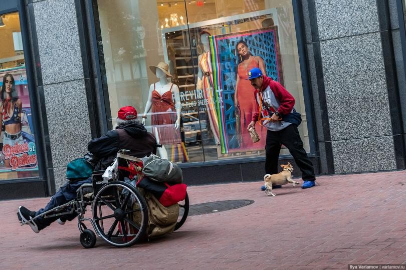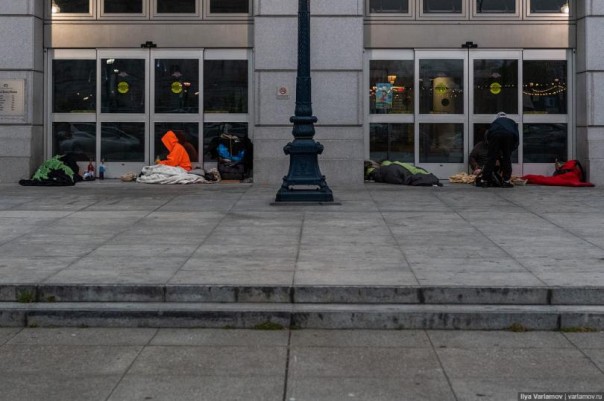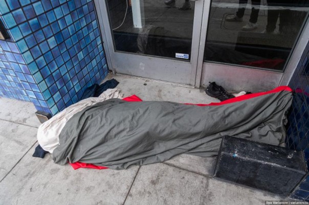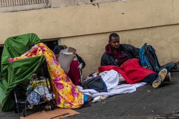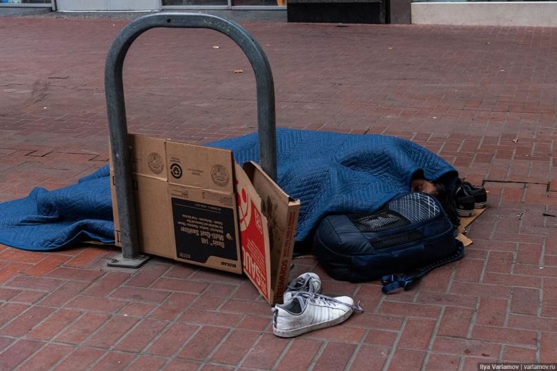 Один мой знакомый, который переехал в Сан-Франциско, заметил, что обычно русские переживают, что в Калифорнии их будут смущать геи, и они не смогут быть достаточно толерантны к ним. Но на самом деле сложно быть толерантным к бомжам! Да, Сан-Франциско славится своими бездомными. Их очень много в центре города, и невозможно пройти и пары кварталов, чтобы не встретить спящего в грязных тряпках человека.