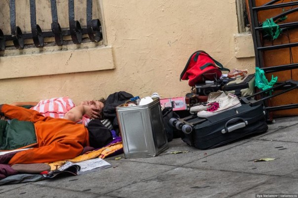 Но потом понимаешь, что всё-таки что-то здесь неладно... Чем дальше, тем больше бомжей, которые валяются в грязных тряпках на улицах.