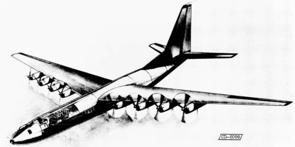 Проект тяжёлого транспортного самолёта на водороде от Lockheed. Огромные баки под крылом крайне взрывоопасны, зато серьёзная экономия на цене топлива