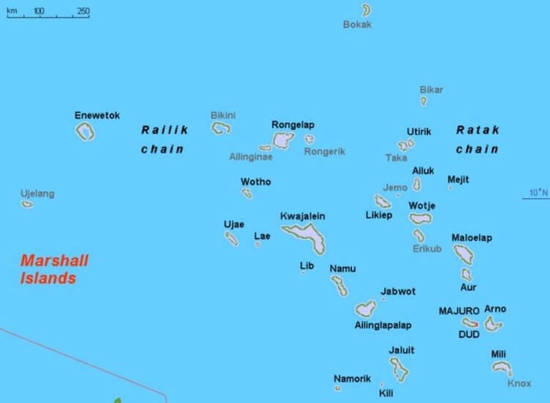 Этим местом является район так называемых Маршалловых островов, расположенных в Тихом Океане. На их территории, с 1946 по 1960 годы, американские военные проводили испытания ядерного оружия. В частности, на островах под названиями Бикини и Эниветок было проведено около 67 ядерных испытаний, которые оставили после себя радиоактивные частицы, погубившие более 800 местных жителей.