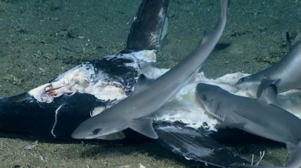 В один из дней погружение проводилось в 130 километрах от побережья Южной Каролины. На глубине около 450 метров была снята захватывающая сцена. Сначала в кадр попала группа колючих акул (катранов) двух видов: Squalus clarkae и Centroscymnus owstonii, поедающих останки 2,5-метровой меч-рыбы. Причина её гибели не известна, но поблизости не заметили рыболовных снастей, так что не исключено, что рыба умерла от болезни или старости.