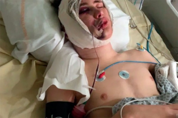 Давид, 31 год, ранен резиновой пулей: перелом правой верхней челюсти, перелом альвеолярного отростка, птеригоида, потеря костной массы и семи зубов, потеря 2,5 см верхней губы