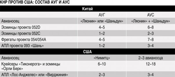 Некоторый паритет по боевому потенциалу складывается, если сравнивать американскую АУГ с китайским АУС.