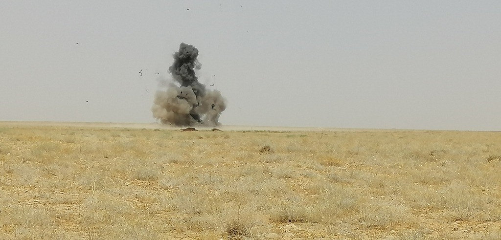 16.08.19 г. в здании, расположенном в г. Меядин провинции Дейр-эз-Зор, обнаружен схрон боевиков НВФ. Найденные боеприпасы и подрывная машинка иностранного производства переданы в Мухабарат. Здание уничтожено методом подрыва.