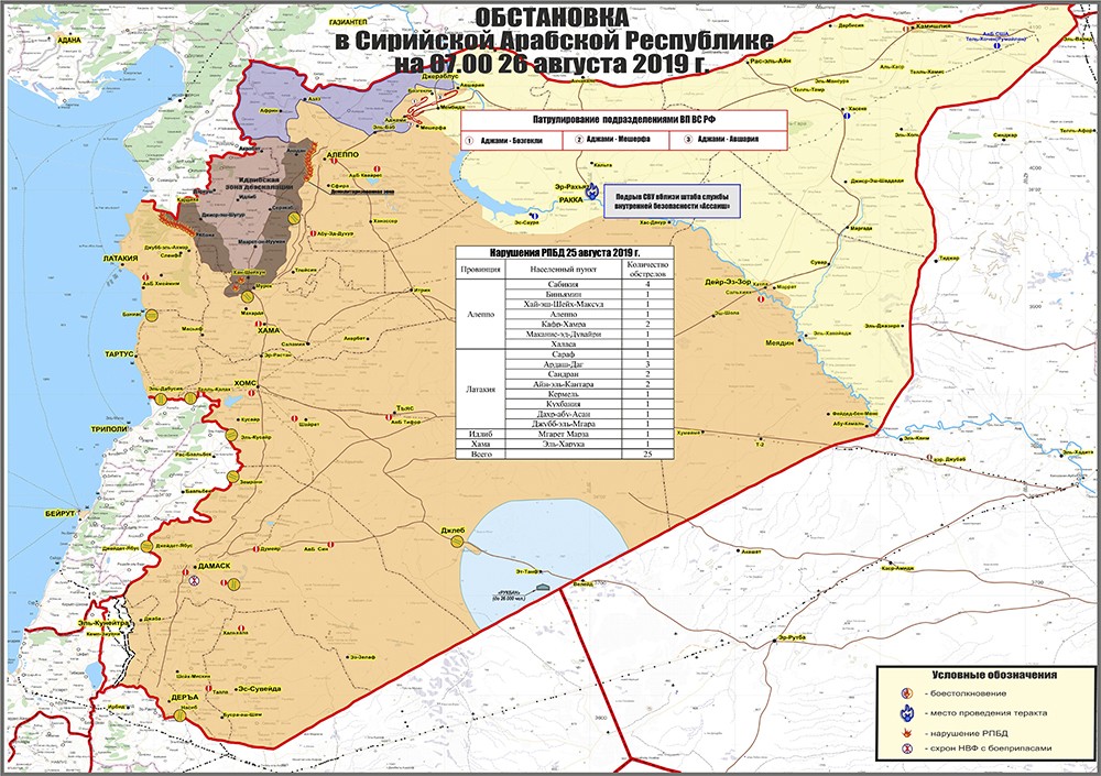 Сирия, 26 августа. Боевики обстреливают сирийскую армию в Хаме. В Ракке при взрыве пострадало семь человек. В Идлибе ВВС Сирии сбросили бомбы на укрытия джихадистов. Об этом сообщает военный источник