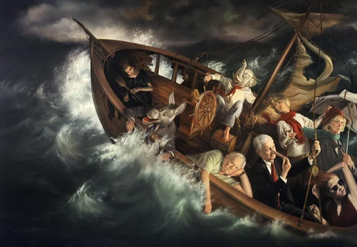 Интересна и другая его картина «Корабль дураков» картиной Иеронима Босха, как и на картине Босха корабль идёт сквозь шторм без управления, но каждый его персонаж уникален, созданный фантазией автора, там есть и человек с ослиной головой ( в которой прослеживается намёк на демократическую партию США), есть фигура с головой слона ( слон символ республиканцев), есть человек с носом Пинокио, который намекает на ложь политиков, в корабле множество дыр и никто им не управляет, и нельзя сказать куда придёт этот корабль, возможно это намёк на современную элиту. Картины Бауэрса это одновременно сатира и глянец. Некоторые критики называют его современным Дали, но на мой взгляд он современный Босх. Его картины одновременно отталкивают, так как многое изображенное на них вызывает неприятное ощущение, а точнее отталкивает, но есть и то что притягивает.