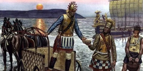 В те времена его добывали совсем немного: в горах будущей Богемии, в Испании, в далёком Афганистане и, наконец, больше всего в Британии, на полуострове Корнуолл. А это означало, что в сердце общества бронзового века лежала торговля. Караваны купцов и торговые корабли отправлялись в долгий путь, чтобы обменять золотые монеты, стеклянную посуду или оружие на олово и медь. Торговля получила такое развитие, что уже тогда, тысячелетия назад, люди изобрели кредит и вексели.