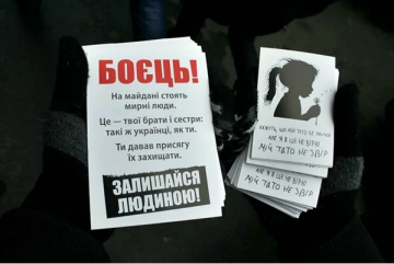 А вот эти шедевры последователей Геббельса нужны, чтобы "задобрить" Беркут. Не важно, что эти мирные люди потом кидали коктейлями Молотова.
