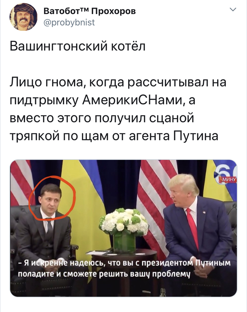 За пару часов до этих слов с трибуны ООН Зеленский, вообще-то, показывал пулю, которой в Донбассе убило правосека Слепака (его президент Украины представлял как оперного певца), и обвинял Россию в агрессии, но с Трампом спорить не стал.