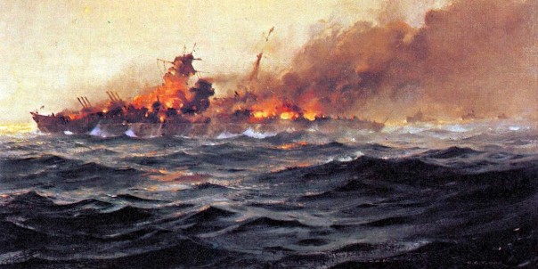При таком перевесе сил одинокий линкор не мог ни выйти победителем, ни хотя бы сохранить себе жизнь.