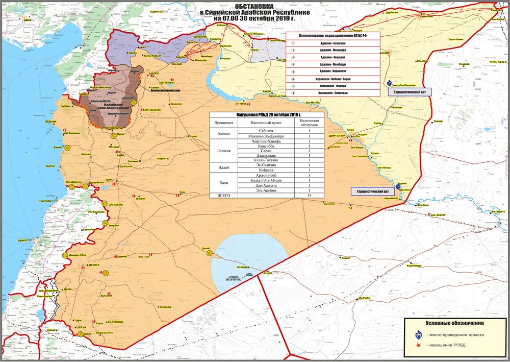 Справка по обстановке на территории Сирийской Арабской Республики на 30 октября 2019 г.