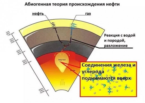 Согласно данной теории, этан и более тяжелые углеводороды, присутствующие в составе нефти, могут синтезироваться из неорганических соединений, присутствующих в верхней мантии Земли.