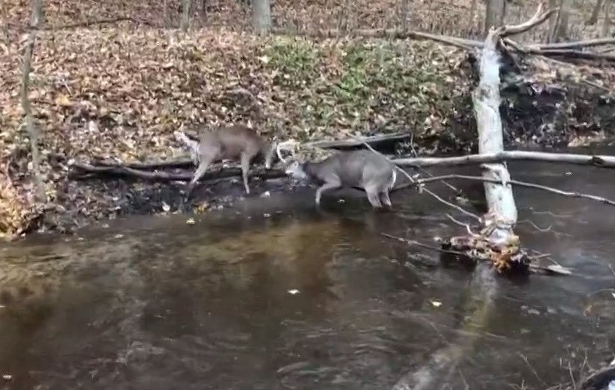 В американском штате Мичиган люди заметили оленей, которые сцепились рогами и уже не могли разойтись. В брачный сезон лоси и олени сражаются за самок: подобные битвы могут закончиться даже смертью одного из соперников. Иногда свою роль играет и погода: упав в ледяную реку, животные замерзают там.