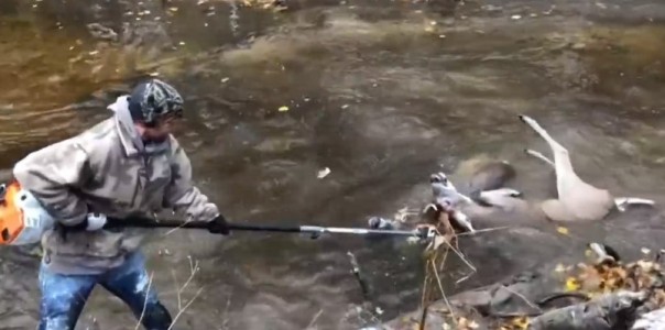 Марк позвал друзей, и они загнали оленей в ближайший ручей. В воде сухопутные звери менее подвижны; они тут же упали на спину, и помочь им стало проще. Мужчины воспользовались пилой для обрезки деревьев и освободили животных, которые тут же убежали.