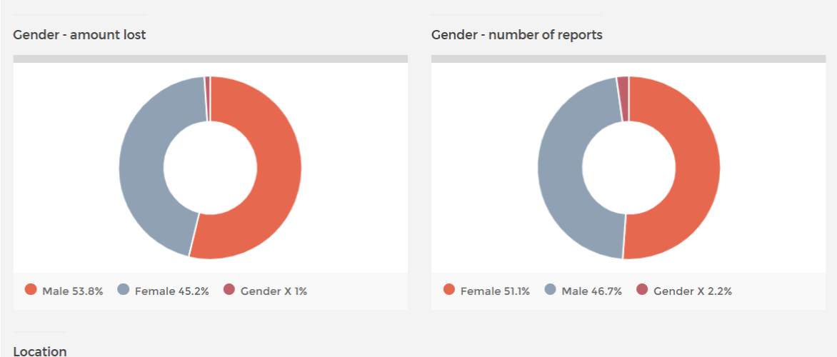 На самом деле я пишу про аферистов мужчин, но по статистике цифры жертв приблизительно одинаковые. Нашла в Австралии, но думаю в США цифры такие же