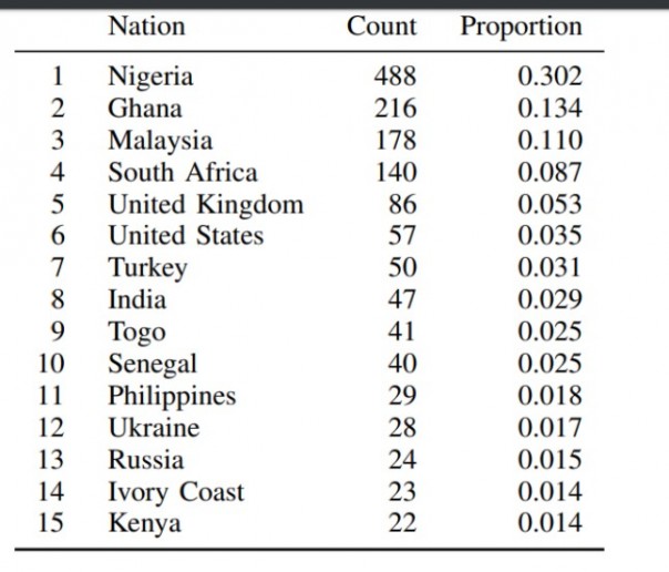 Ну и вот статистика по странам брачных аферистов