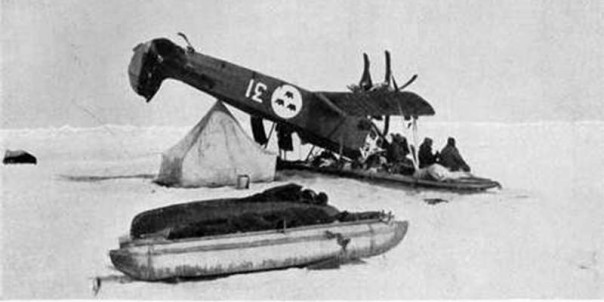 На льду же остались девять человек (трое — с переломами), включая самого прославленного генерала; радиостанция, пистолет (он помог защититься от медведей), солидный запас еды и палатка, которую выкрасили в красный, чтобы та стала более заметной.