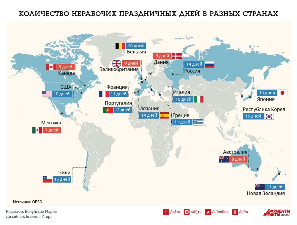 Количество нерабочих праздничных дней в разных странах. Инфографика » E-News.su | Cамые свежие и актуальные новости Новороссии, России, Украины, Мира, политика, аналитика