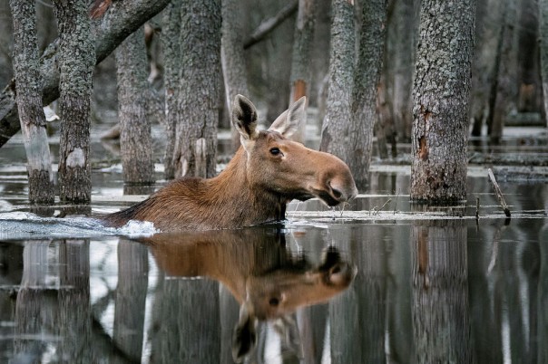 Фото с плывущим лосем, по признанию автора, и вовсе получилось по счастливому стечению обстоятельств.