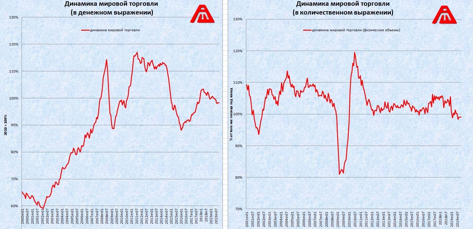 13. Графики мировой торговли в денежном и количественном выражении: