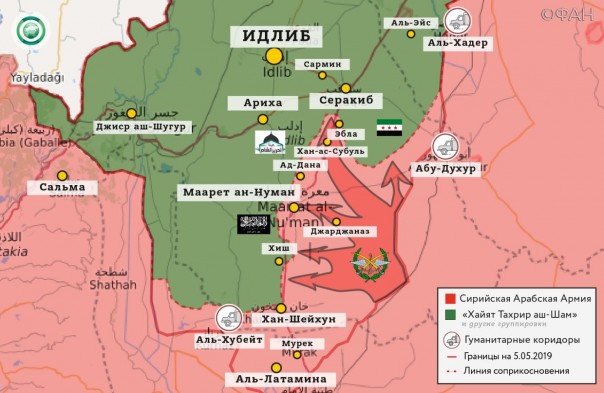 «Хайят Тахрир аш-Шам»: в Алеппо при наступлении правительственной армии потеряла ряд боевиков и боевой техники, на юге Идлиба лишилась путей снабжения и отрезана от подкрепления в Серакибе.