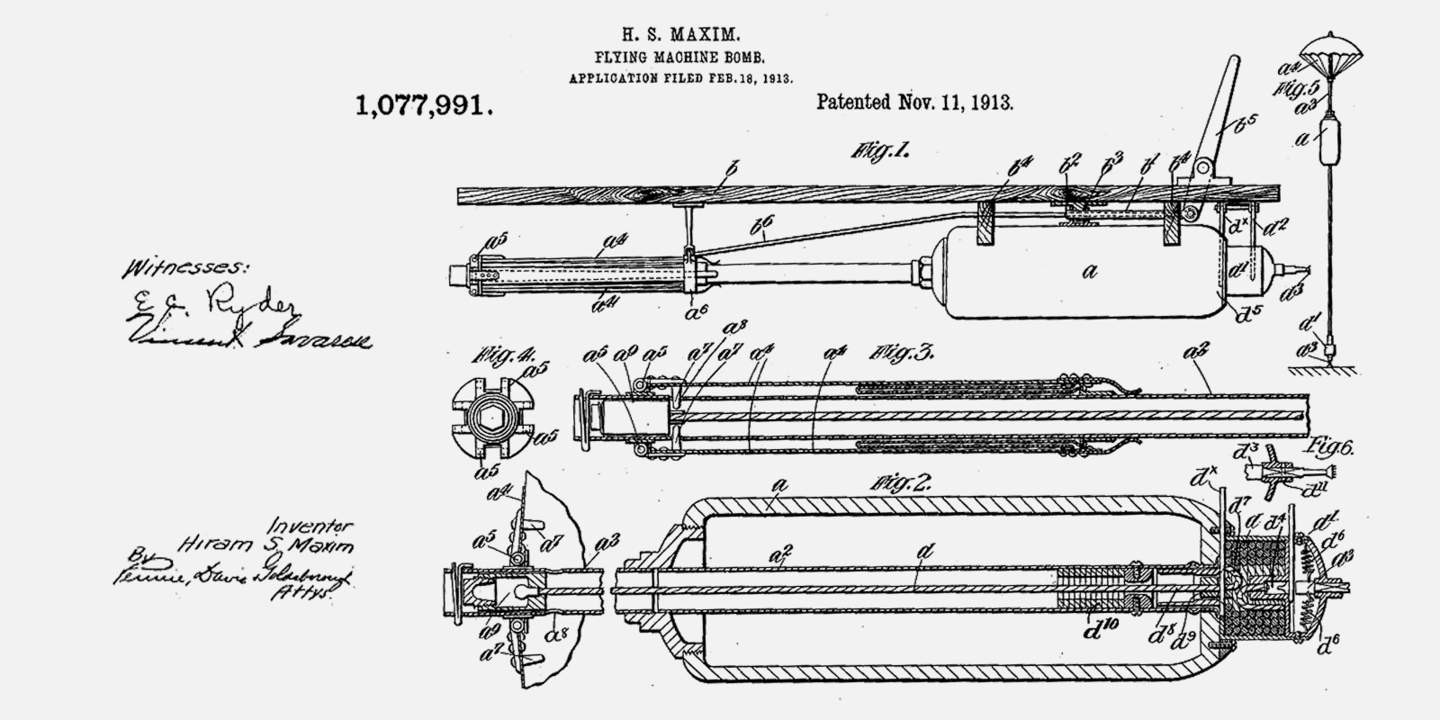 В 1913 году сэр Хайрем патентует осколочно-фугасную бомбу для сброса с аэроплана. Данная бомба для наиболее эффективного поражения открыто расположенных целей имела выдвижной зонд, вызывавший срабатывание взрывателя на предустановленной (небольшой) высоте над землёй. Для обеспечения же вертикального прихода бомбы к цели зондом вниз применялся небольшой стабилизирующий и тормозящий парашют.