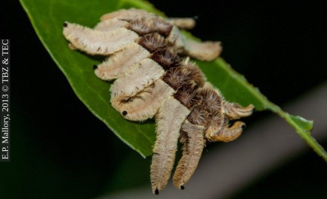 Томми поделился видеороликом в надежде, что ему помогут идентифицировать нежданного гостя – и вскоре это и впрямь произошло. Энтомологи опознали существо как гусеницу моли вида Phobetron pithecium, который относится к семейству слизневидок, или бабочек-мокриц (Limacodidae). По всей видимости, гусеница попала в машину через приоткрытые окна, упав с нависшего над ней дерева.