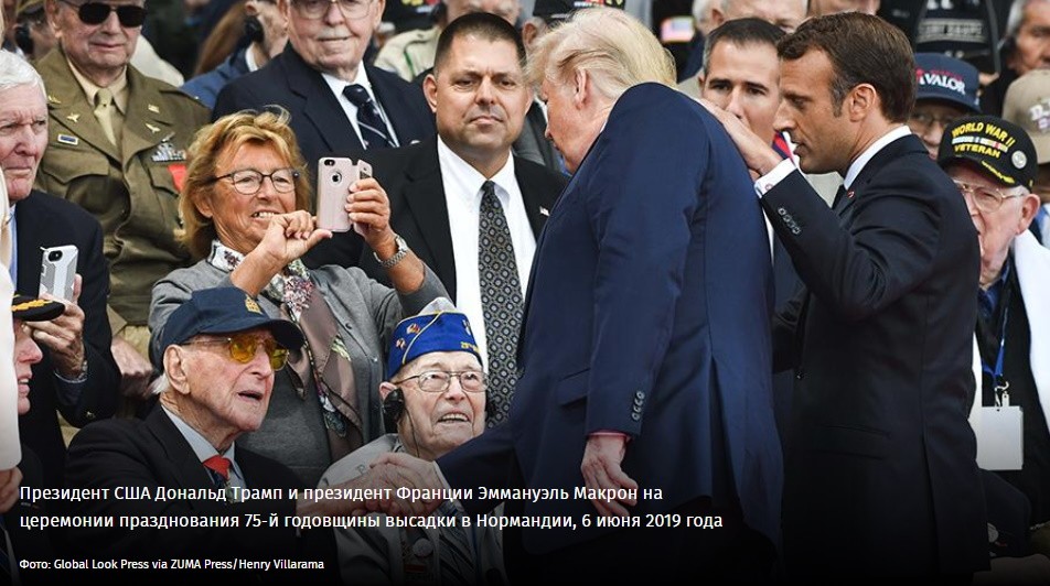 Неоднозначно в этом отношении ведет себя и Франция. Не так давно глава Пятой республики Эммануэль Макрон, выступая перед польскими студентами, заявил, что это Россия пытается пересмотреть историю Второй мировой войны. А в 2019 году французский лидер пригласил главу Белого дома Дональда Трампа на церемонию празднования высадки в Нормандии, чтобы подчеркнуть роль США в этой спасительной операции.
