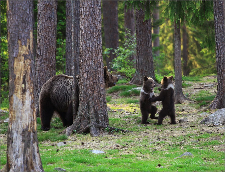 Учитель физкультуры Валттери Мулкахайнен (Valtteri Mulkahainen) живет в финской области Кайнуу на востоке страны. Он увлекается фотографией и в свободное время отправляется на съемки природы. Несколько лет назад он наткнулся в лесу на семейство медведей, и эта встреча подарила ему незабываемые снимки.