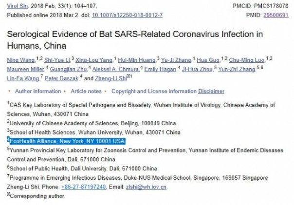 Судя по научным работам на сайте NCBI только прошлого года, специалисты EcoHealth Alliance проводили совместные анализы и работы как с Шеньянским сельскохозяйственным университетом, пекинским Институтом патогенной биологии, так и Институтом вирологии в Ухане.