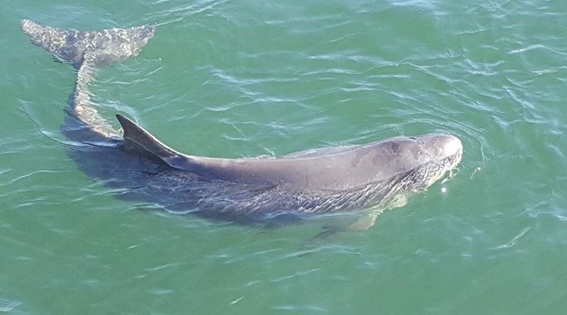 Возле одной из набережных Кейптауна на глазах у множества людей развернулась редкая сцена. В бухту, спасаясь от хищника, заплыл малый карликовый кашалот (лат. Kogia sima). Эти млекопитающие длиной до 2,7 метров благодаря своим размерам скоре напоминают дельфинов, нежели кашалотов. Их естественными врагами являются любые более крупные морские хищники, и в этот раз дезориентированным кашалотом заинтересовался морской котик.