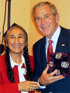 Во время своего пребывания на посту президента WUC, Кадир несколько раз встречалачь с тогдашним американским президентом Бушем. Когда Буш вел незаконную войну против Ирака и преследовал мусульман в американском руководстве под эгидой "войны с террором", Кадир обратилась к главе США с просьбой взять на себя дело уйгурских мусульман. "Для меня была большая честь встретиться с президентом", - заявила Кадир. Она "выразила благодарность за продемонстрированную приверженность президента Буша продвижению свободы и демократических реформ в КНР".