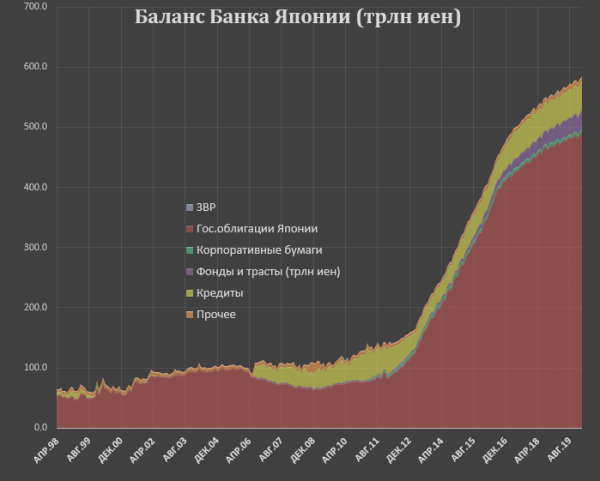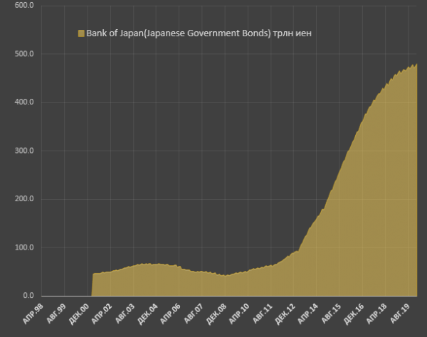 Зато ЦБ Японии не жалея сил скупает корпоративные фонды, трасты, ETF и прочую дрянь )) Пока на балансах у ЦБ Японии свыше 30 трлн иен этого добра. Примерно на 5 трлн иен в год скупали, сейчас могут до 10-12 трлн увеличить темпы. Также ожидается активизация скупки государственных облигаций с 16 трлн иен в год до 40-50 трлн