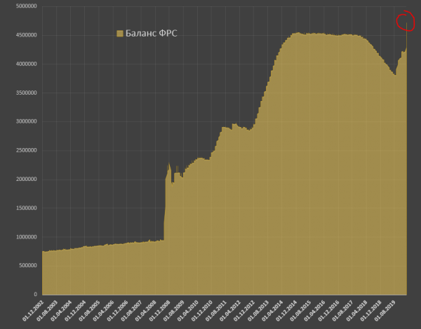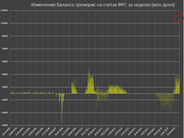 За 3 недели было вкачено 510 млрд, с начала расширения баланса ФРС (от 11 сентября 2019) почти 1 трлн!