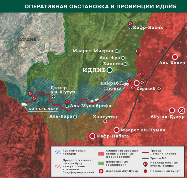 В Идлибе состоялось открытие 58 турецкого наблюдательного поста. Сирийский центр мониторинга за соблюдением прав человека (SOHR) сообщает о том, что ВС Турции разместили новый КПП неподалеку от населенного пункта Джаннат Аль-Кура в западной части провинции. Блокпост находится у шоссе М-4, по которому проходит маршрут совместного патрулирования Турции и военной полиции РФ. Напомним, ранее Анкара взяла на себя обязательства по обеспечению безопасности в зоне мониторинга.
