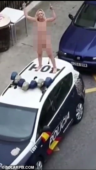 Голая испанка на крыше полицейского авто устроила протест против карантинной самоизоляции