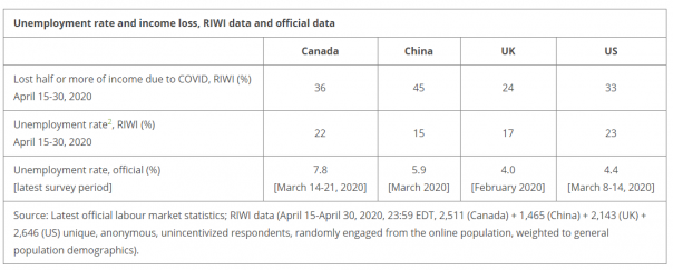 Организация RIWI провела исследование, которое позволяет оценить как уровень реальной безработицы, так и долю потерянных доходов.