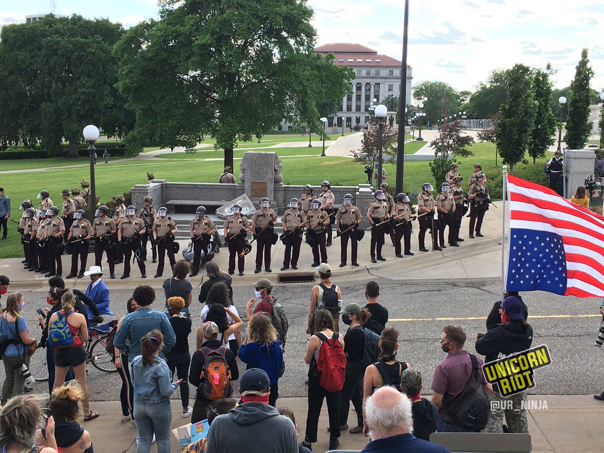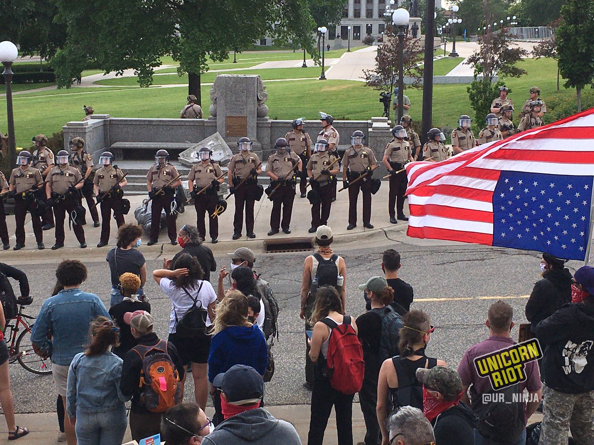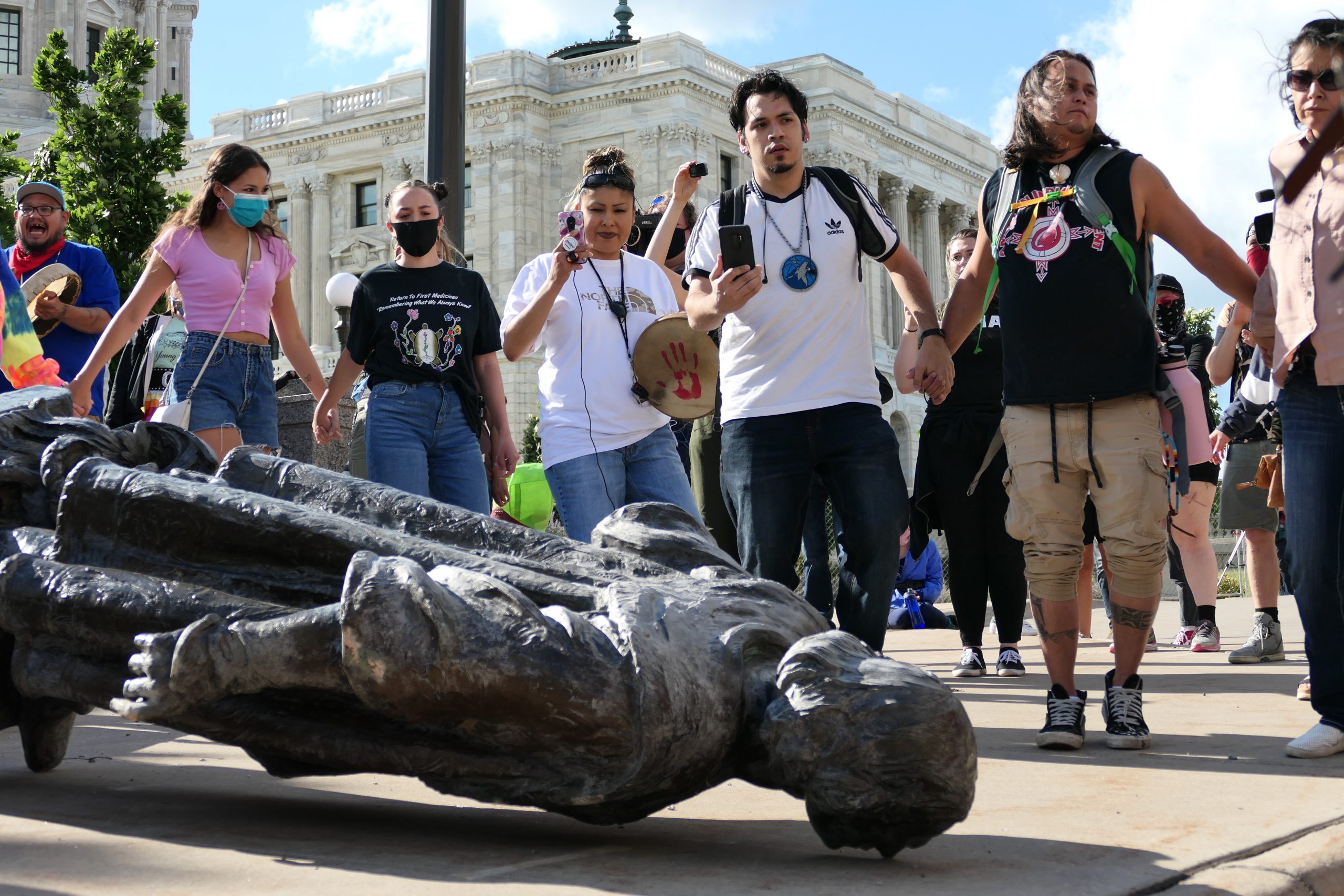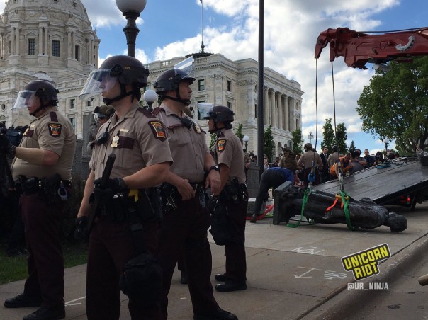 В Сент-Поле (столица штата Миннесота) протестующие снесли памятник Колумбу у местного Капитолия. Полиция сносу не препятствовала, обеспечив лишь вывоз упавшей статуи.