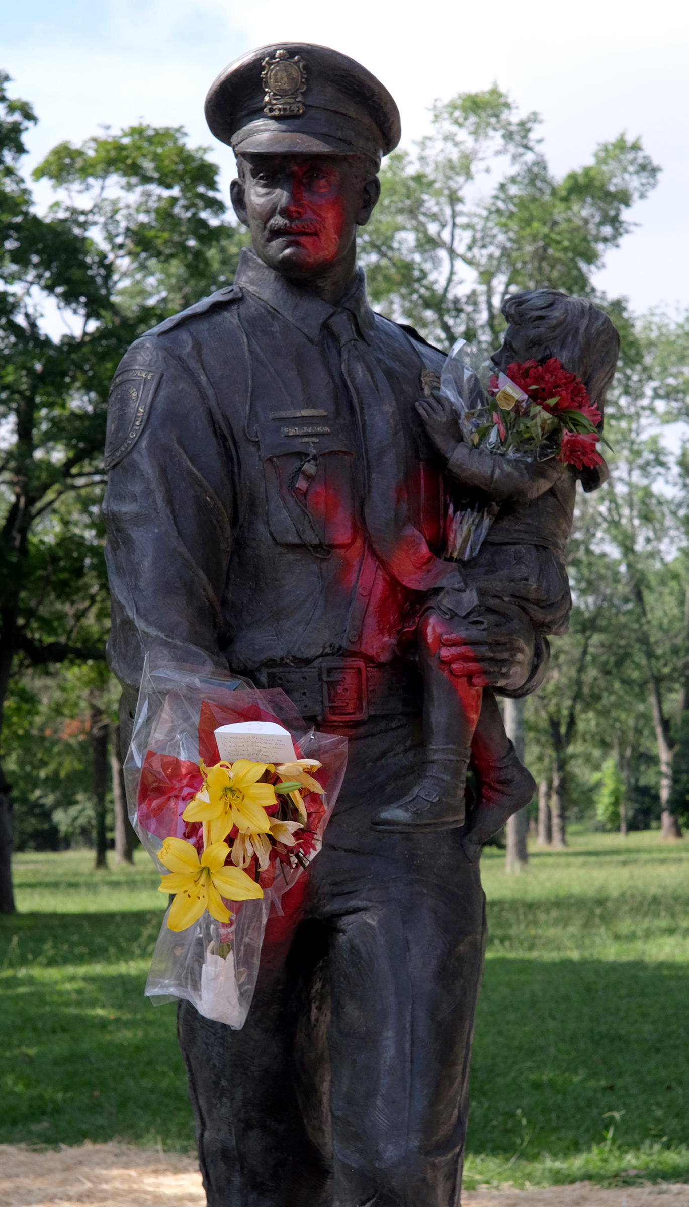 Памятник был установлен в честь полицейских, погибших при исполнении служебных обязанностей. Ранее статуя неоднократно подвергалась актам вандализма.