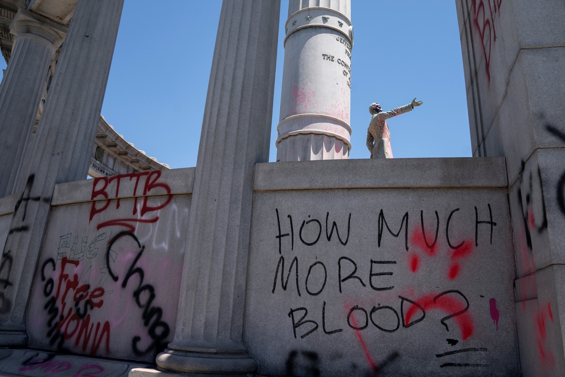В Ричмонде снесли памятник президенту Конфедерации Джефферсону Дэвису, который был президентом Южных штатов во время Гражданской войны с 1861 по 1865 год. Был последовательным рабовладельцем в теории и практике.