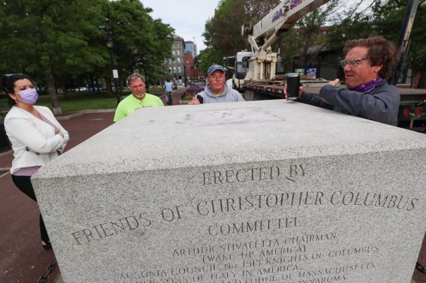 В Бостоне демонтировали еще один памятник Христофору Колумбу, которому ранее неизвестные отрезали голову.