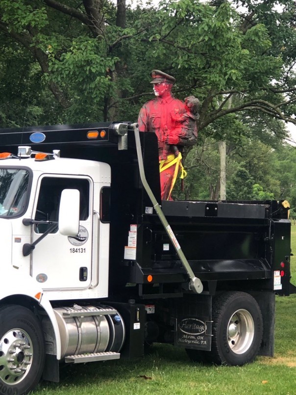 В Ричмонде с помощью мусоровоза снесли памятник "Погибшему полицейскому".