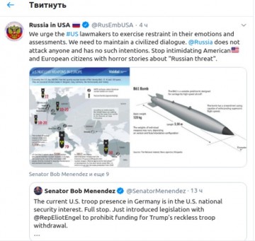 Примечательно, что Менендес и Энгел являются членами Демократической партии. Так что их законопроект не кажется странным. Понятно, что сделано это намеренно и в противовес Трампу. Другое дело, что подано все было под предлогом «российской угрозы», и российские дипломаты в США уже не смогли на это не отреагировать.