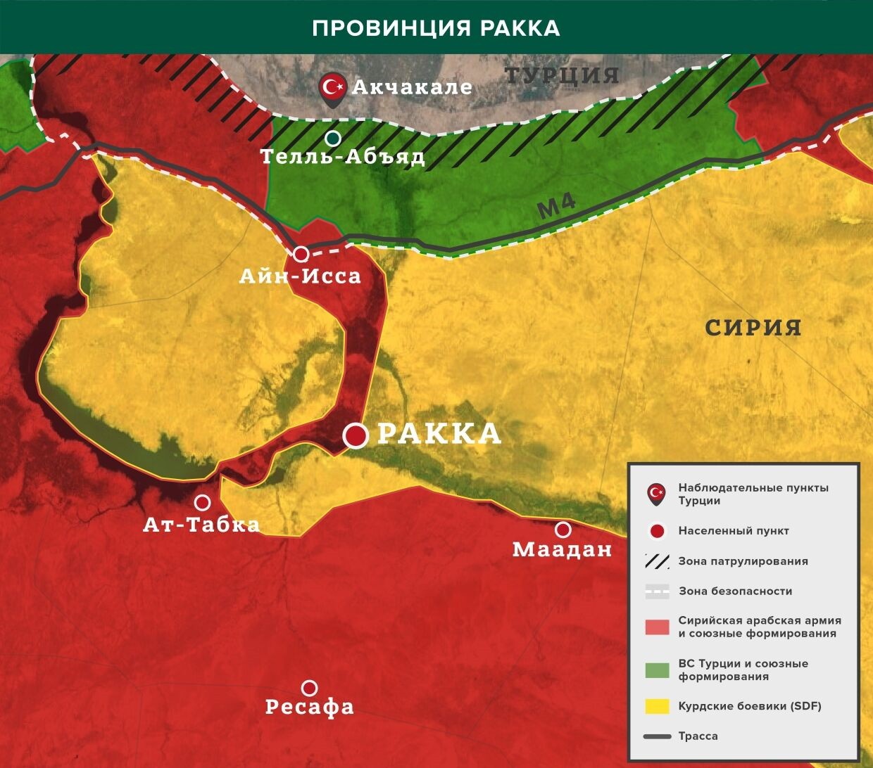 Как и в Хасаке несколькими часами ранее, в северных районах Ракки возобновились вооруженные столкновения между курдскими боевиками и членами «Сирийской национальной армии», выступающей при поддержке Турции. Как передает на своей странице в сети Twitter военный источник (SOHEB2019), огонь был открыт с позиций «Демократических сил Сирии» (SDF). Под ударом оказались окраины города Хаммам ат-Туркман, где базируются союзники Турции. В результате были убиты два члена СНА. В свою очередь протурецкие боевики прибегли к ответным обстрелам.
