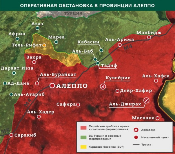 Между тем в одном из занимаемых протурецкими формированиями районов на севере провинции произошел взрыв неразорвавшегося снаряда. Как передает на своей странице в Twitter военный источник (Mahmoodadam21), детонация бомбы привела к гибели ребенка. Более подробная информация о случившемся в настоящий момент выясняется. На месте взрыва сейчас работают сотрудники псевдогуманитарной организации «Белые каски».