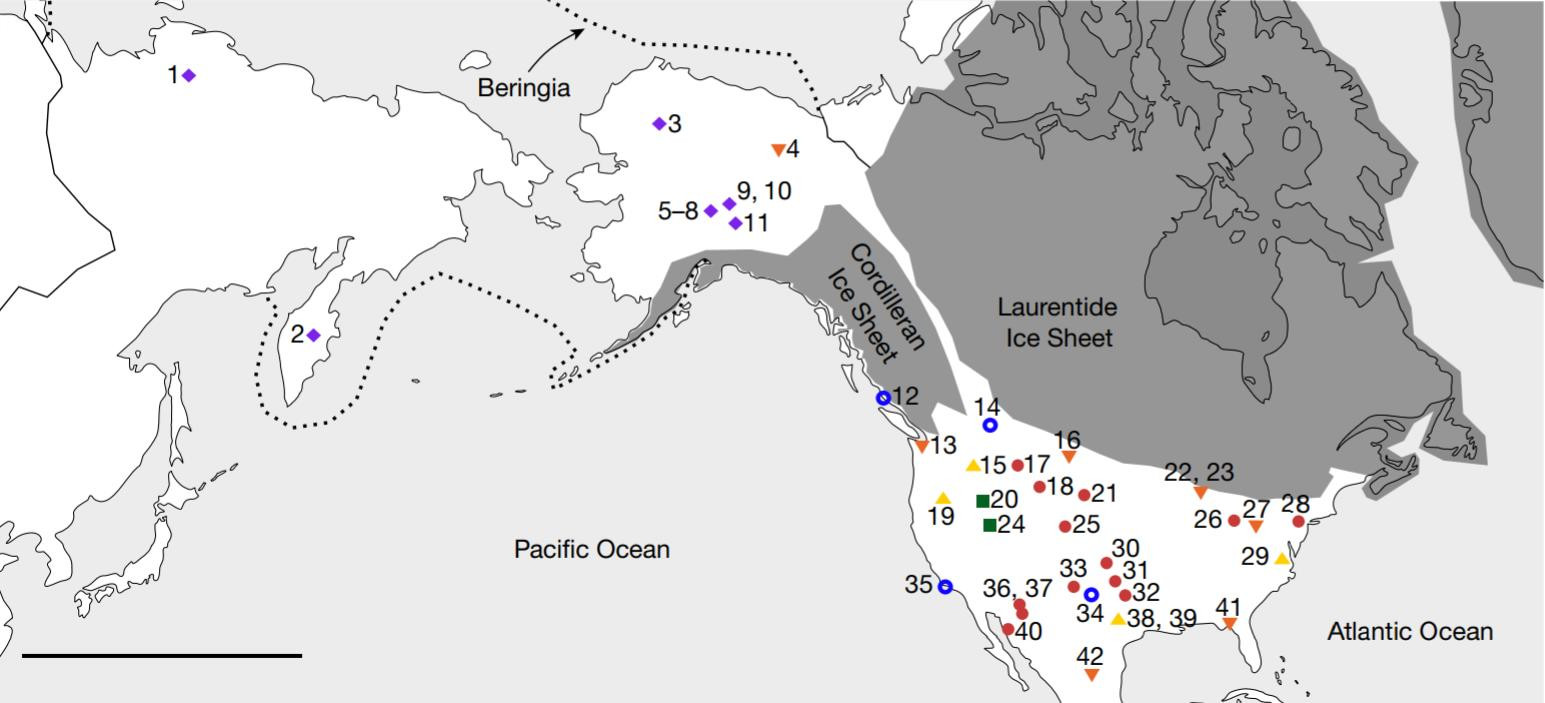 Двое исследователей из Оксфорда и Сиднея собрались с духом и собрали в кучку все достоверные и недостоверные датировки Северо-Восточной Сибири и Северной Америки. Всего набралось 42 местонахождения. Недостоверные были отложены в сторонку – в конец приложения к статье, а достоверные проанализированы.