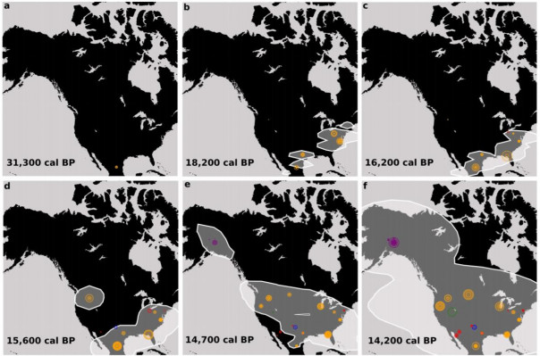 Самые древние достоверные следы заселения обнаружены в мексиканской пещере Чикуихуите (кстати, расположенной в зоне, конролируемой наркокартелями; думается, про сами раскопки можно писать и снимать вестерн) – 31,405-33,150 тыс.л.н. Вторым заходом идут стоянки Гаульт (17,385-26,435 тыс.л.н.), Медоукрофт (18,620-24,335 тыс.л.н.), Блюфиш (23,310-24,035 тыс.л.н.) и Кактус Хилл (18,970-20,585 тыс.л.н.). Третья серия заселения – самая массовая – включает прочие стоянки, с разбросом датировок от 20 тысяч лет до голоцена и очевидным пиком в 15 тысяч лет назад.